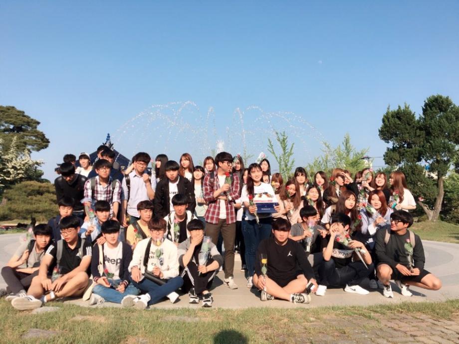 성년의 날을 맞이하여 학생회에서 준비한 꽃과 케익으로 축하하고 기념하는 자리를 가졌습니다.