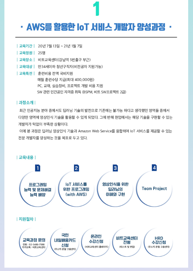 고용노동부 4차산업혁명 선도인력양성사업으로 “AWX를 활용한 IoT 서비스 개발자 양성과정” 교육생을 모집 중입니다.