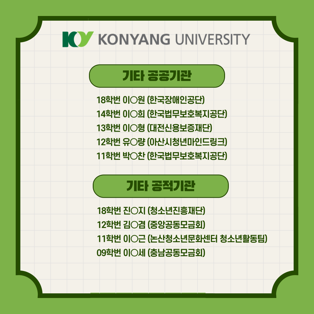 사회복지학과 선배들의 취업처를 확인해보세요!