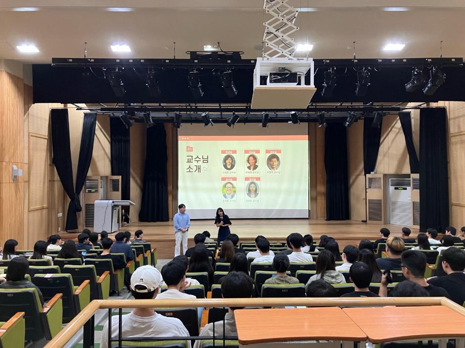 새로운 학과장 님 소개를 포함한 교수님들 소개와 더불어, 여름방학 변경사항(510호 리모델링, 3층 학과 사무실 개조), 2학기 주요일정(사회복지의 날, MT, 학술제, 엑스포, 시험기간 이벤트 등), 질의응답, 이벤트 순으로 진행되었습니다. |