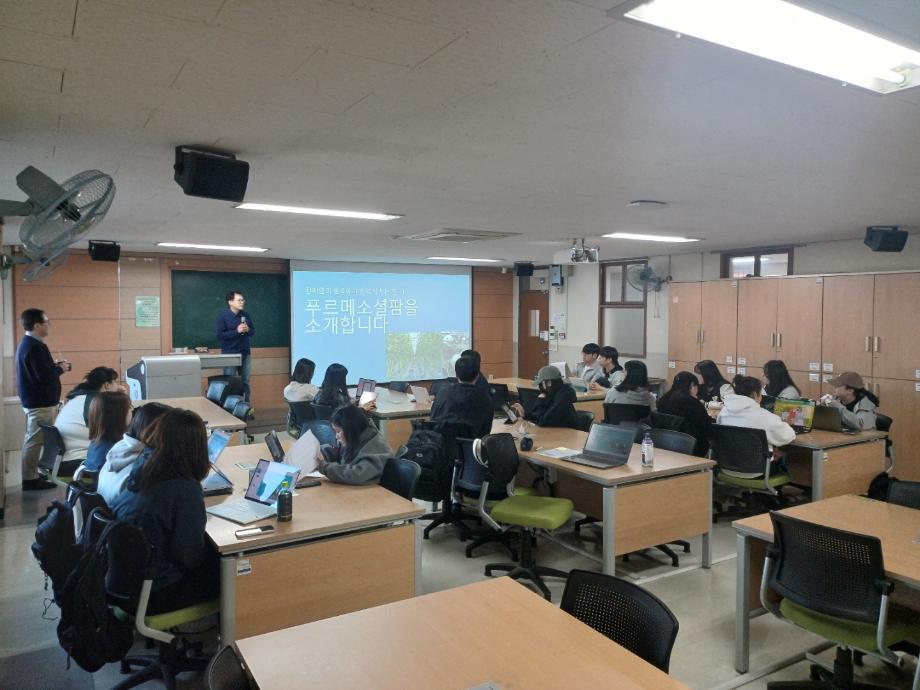 지난 10월 24일 (목) 13:30 ~ 15:30 '푸르메여주팜 재배 팀장' 임규형 선생님께서 '재단의 사회복지사업 - 발달장애 청년의 희망일터' 주제로 특강을 진행해 주셨습니다!