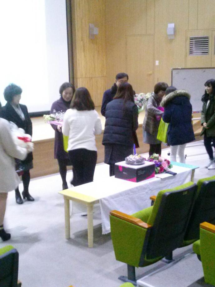 우리 4학년 학생들은 교수님들과 함께 모여 따뜻한 사은회 자리를 마련해주었습니다.