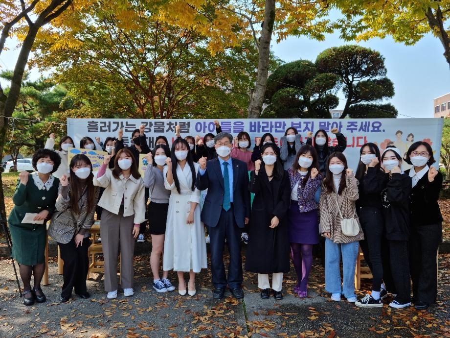 ???? 2021년 11월 1일, 4일에 건양대학교 논산캠퍼스에서 학생들과 교직원 대상으로 아동학대 예방 캠페인을 펼쳤습니다.