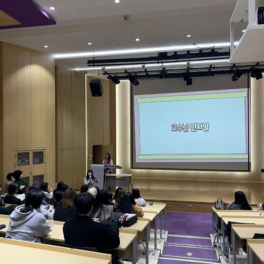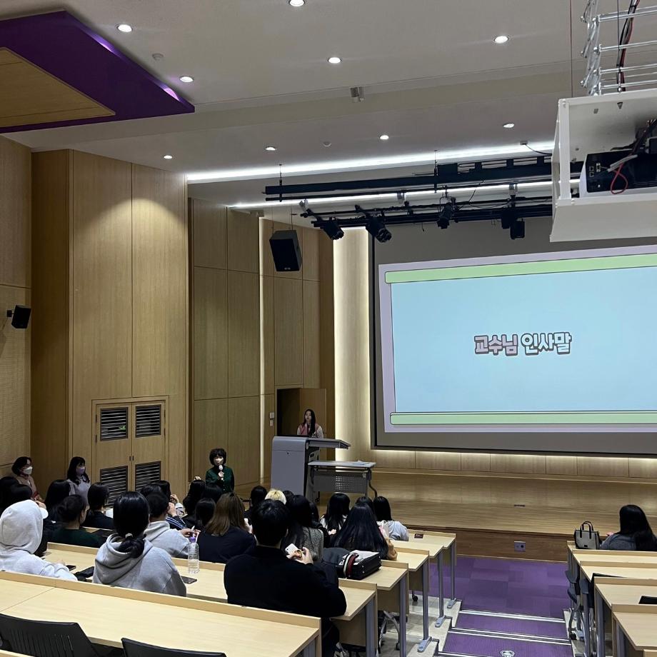 학생들에게 1학기 학과행사 및 일정, 총무부 학회비 보고 등에 대해 안내 하였습니다. 또한 교수님들의 말씀과 새로운 23학번 친구들 임원소개를 하였습니다!