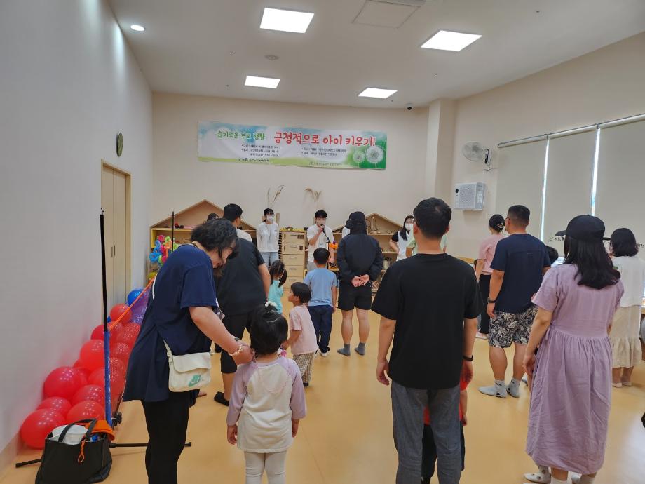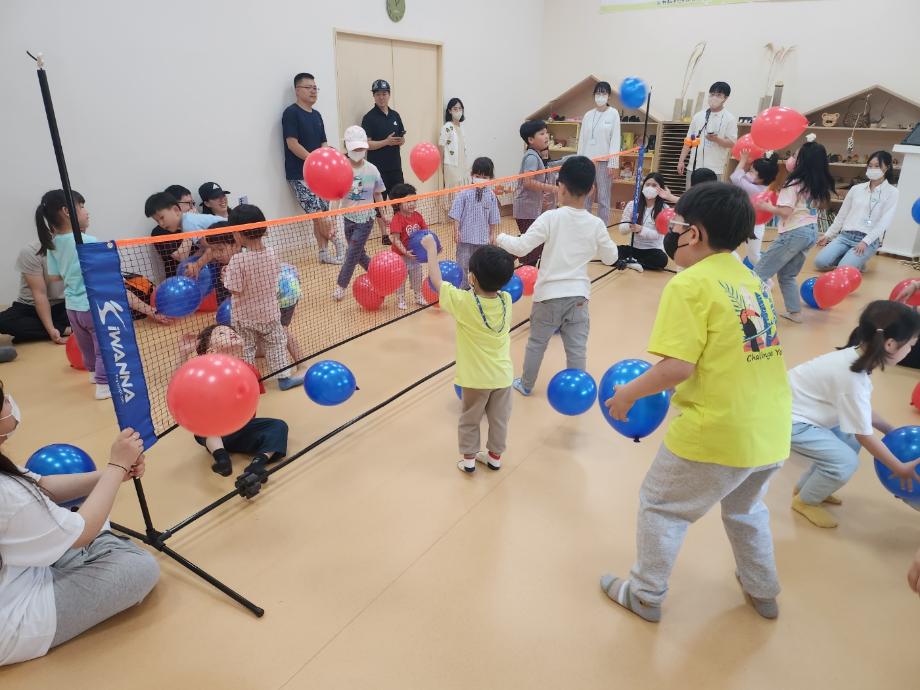 아동교육학과에서는 5월 가정의 달을 맞이하여 계룡시 어린이감성체험장에서 <개관 2주년 기념행사>에 참여, 체험부스 운영 및 봉사활동을 진행하였습니다. 지난 5월 20일(토)에 개최된 이날 행사에는 계룡시와 인근 지역에 거주하는 12세 이하 영유아와 어린이, 보호자 등 500여명이 찾아온 가운데 오전과 오후 2타임으로 나뉘어 ‘감성놀이 체험’, ‘숲속 놀이터 체험’, ‘레크리에이션 체험’, ‘대형 에어바운스 체험’, ‘짚풀공예 체험’, ‘감성 북크닉’, ‘모래놀이터’ 등의 다양한 체험 프로그램이 진행된 바 있습니다. 특히 재학생 20명은 어린이들과 보호자가 몸과 마음으로 함께하는 ‘레크리에이션 체험(알록달록 풍선놀이)’부스 운영 및 봉사활동을 펼쳐 어린이들로부터 좋은 반응을 얻었습니다. 엄마 아빠와 함께 즐겁게 뛰노는 아동들의 웃음소리에 행복한 하루였습니다.