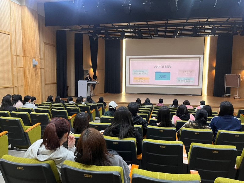 2024년도 3월 24일 아동교육학과 1학기 개강총회를 진행하였습니다. 이 날은 상반기동안 아동교육학과의 일을 도와줄 임원 소개 후 교수님들의 말씀, 상반기에 진행 될 일정들과 MT 장소에 대한 소개를 진행하였습니다. 끝으로 총무부 학회비 보고 및 공지사항에 대해 전달한 후 개강총회를 마무리 하였습니다. 개강총회에 참석해주신 교수님들, 신입생분들, 재학생 여러분들 모두 감사합니다.