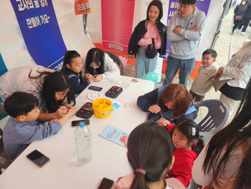 저희 아동교육학과는 지난 달 24일 논산 딸기축제 마지막 날에 학과 홍보를 위한 부스 운영을 진행하였습니다. 이 날 미니 게임과 아동들에게 페이스 페인팅 부스를 진행하였습니다. 저희 부스를 많이 찾아와주시고 좋아해주신 분들 모두 감사드립니다! 아침부터 저녁까지 부스 운영을 함께 해준 1,2,3학년 재학생들과 임원분들, 학과장님 너무나도 수고 많으셨습니다. |