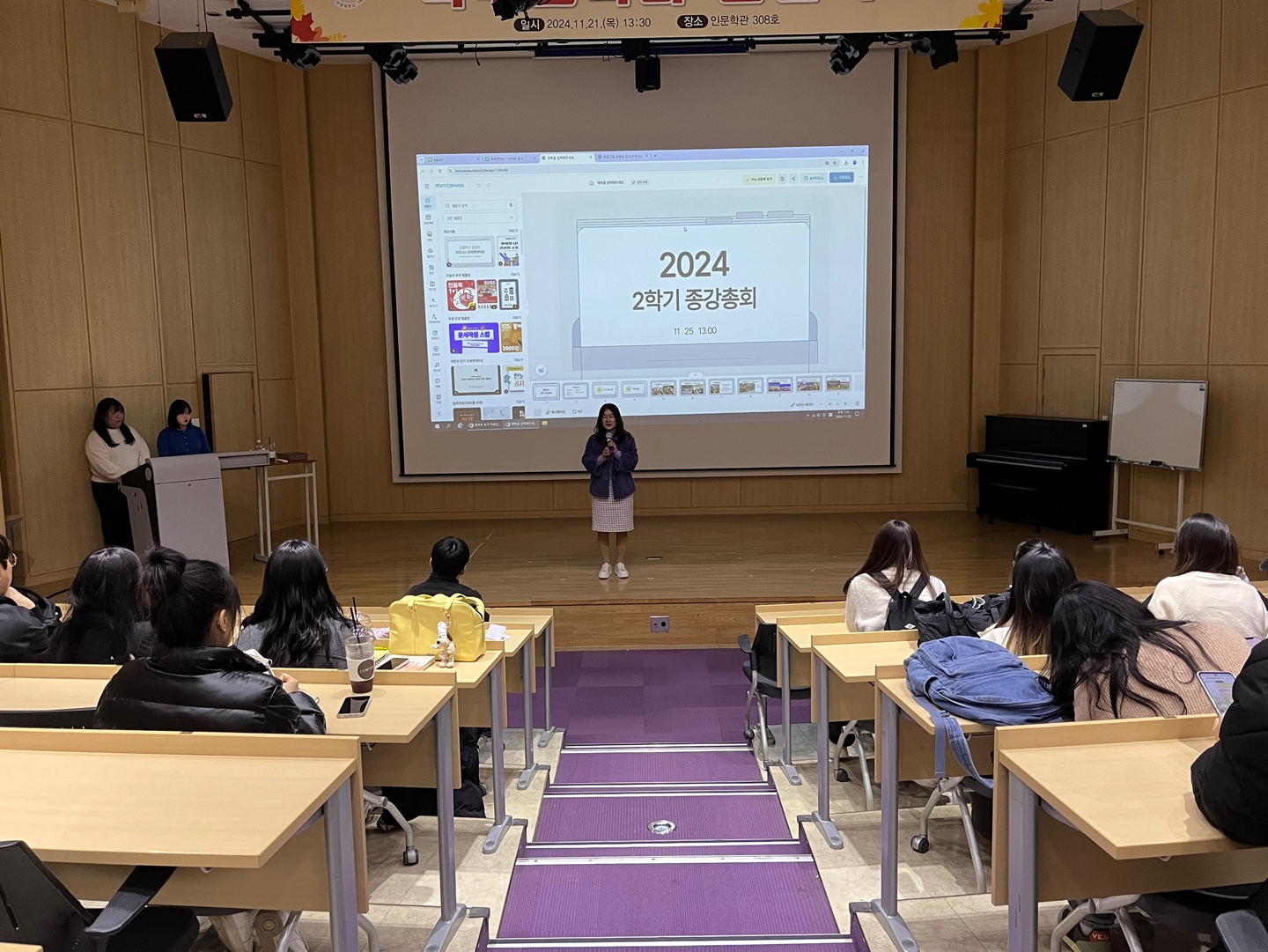 안녕하십니까. 저희 아동교육학과 종강총회는 지난 11월 25일 3층 강당에서 진행되었습니다.