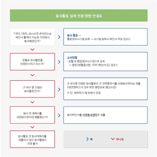 5. 봉사활동 실적 제출 방법 안내표