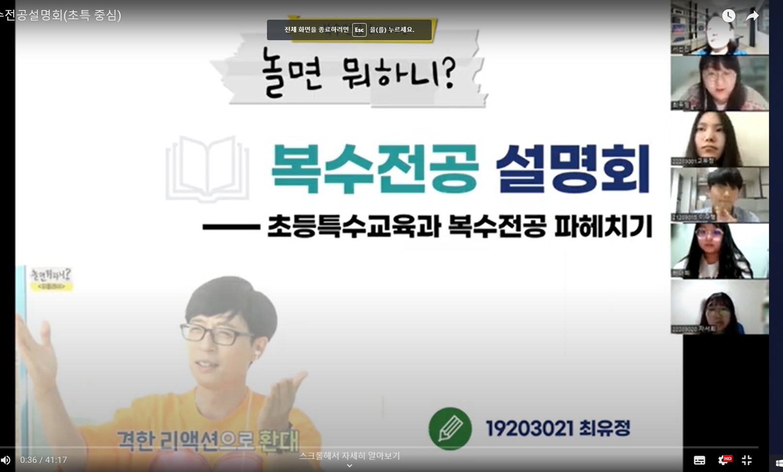 새롭게 복수전공을 신청한 학생들과 함께 복수전공 설명회를 개최하였습니다. 복수전공을 해본 선배들의 노하우를 듣고, 이번 학기 수강 신청 팁도 받았습니다. 설명회를 준비해주신 선배님과 참여해주신 후배들 모두 감사합니다. 일시 : 23년 1월 20일 (금)
