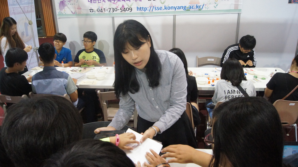 우리 건양대학교 중등특수교육과는 충남지역 초중고등학생들을 위한 진로체험전에서 직업체험관을 운영하여 특수교사라는 직업을 체험하고 진로를 상담해주었다. 우리 학과 부스에서는 특수교육에서 장애학생들의 학습 및 의사소통 지원에 활용되는 보조공학기기들을 체험할 수 있도록 전시하였고, 점자판과 점필을 이용하여 직접 시작장애학생들의 문자인 점자를 써볼 수도 있으며, 클레이 아트(Clay Art)를 활용하여 자신만의 자를 만들어 볼 수도 있다. 아울러 특수교육 분야에 관심있는 중고등학생들을 위한 진로 및 진학상담도 학과교수가 직접 제공함으로써 실질적인 진로체험이 될 수 있도록 하였다.