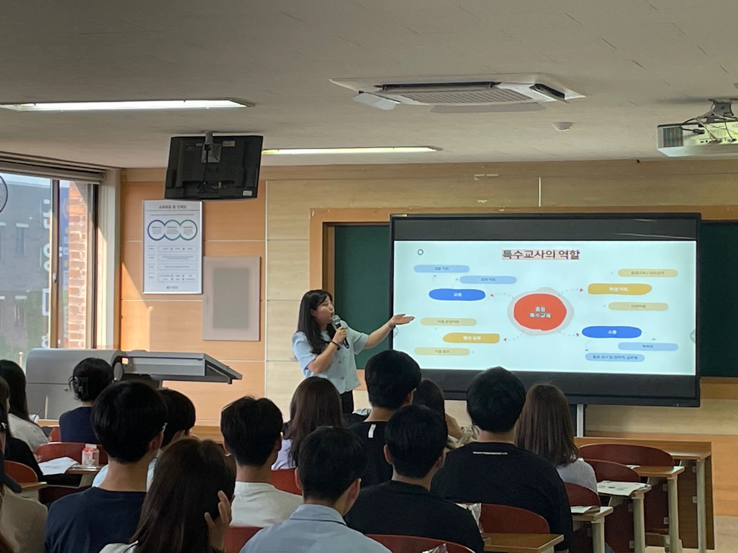 대전해든학교 특수교사인 이*란 선생님이 학교를 방문하여 특수교육이 이루어지는 다양한 학교현장의 모습과 특징을 소개해주셨습니다. 선생님은 특수학교, 특수학급, 특수교육원센터, 병원학교까지 모두 근무한 경험이 있는 자랑스런 키세인입니다. 일시 : 23/5/31 5:30-7:20 장소: 인302 참석 : 1~4학년