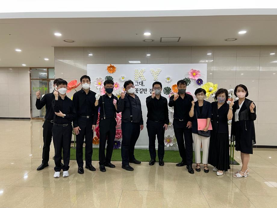 Big Day! 오늘은 장애예술계의 BTS라고 하는 드림위드앙상블 공연단이 건양대에 왔습니다. 드림위드앙상블은 국내 최초 발달장애 전문 연주단체로 2015년 문화관광부로부터 전문예술법인 인가를 받았으며, 단원들은 오랜 시간동안 수천번 넘는 연습을 통해 장애를 뛰어넘는 연주실력을 갖추면서 전문연주자로 활발하게 활동하고 있습니다.