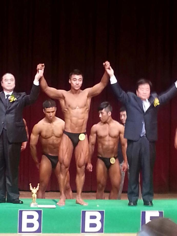 08학번 김민석 선배의 전국 보디빌딩대회 1등 시상식 사진입니다.