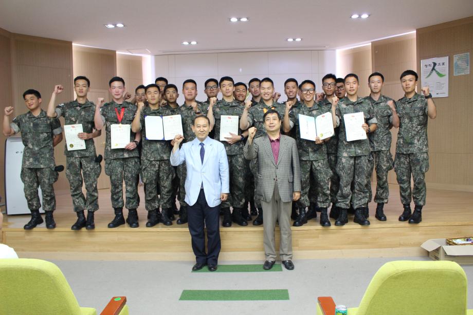 6월 17일 군사학과 2기이자 학군단54기 선배들이 OBC과정을 수료한 후 학교로 돌아오는 홈커밍 데이를 실시하였습니다. 기존OBC와는 다르게 육사, 3사, 학군이 통합된 상황에서 우수한 성적을 얻은 선배들이 자랑스럽습니다. |