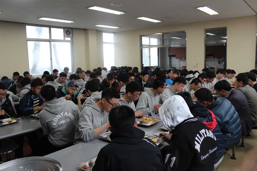 1학년들이 직접 만든 요리로 식사를 하였습니다.