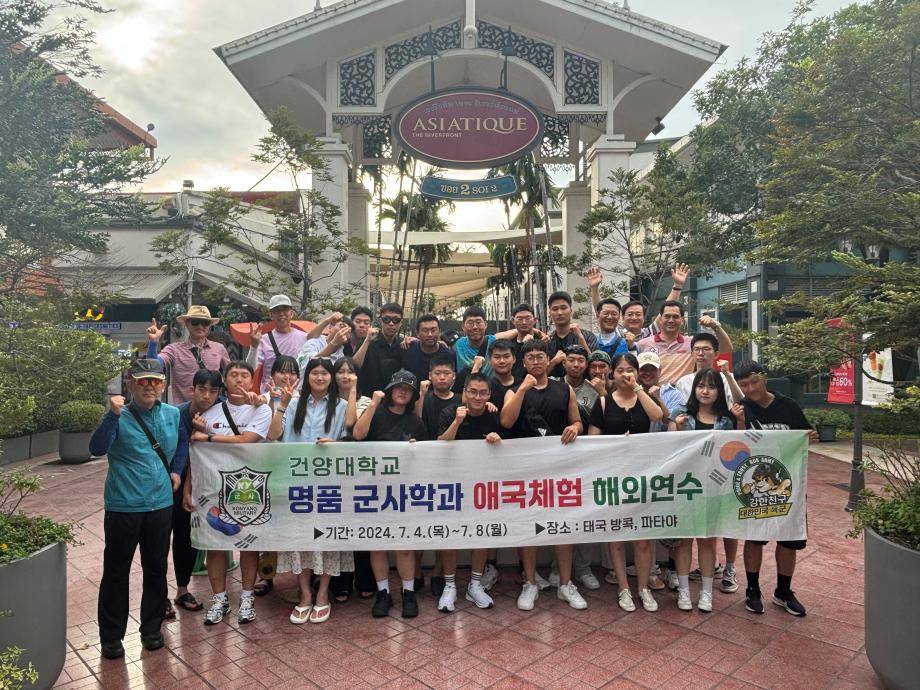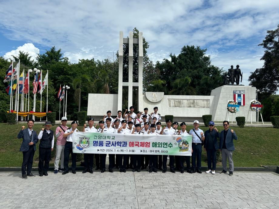 2024학년도 군사학과 애국체험 해외연수 프로그램 - 일자 : 2024.07.04(목) - 07.08(월) [3박5일] - 장소 : 태국 (방콕, 파타야) - 대상 : 군사학과 1학년 |