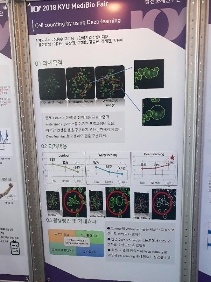 의료공대소속 학과를 대상으로 작품 전시회가 되었습니다. 의공학부 학생들이 좋은 성과를 거두어 작품을 전시했습니다. 행사에 참여한 모든 학우 여러분 고생하셨습니다.