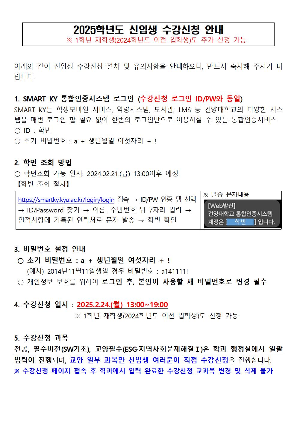| 제목 | 2025학년도 신입생 수강신청 안내 | ||||
