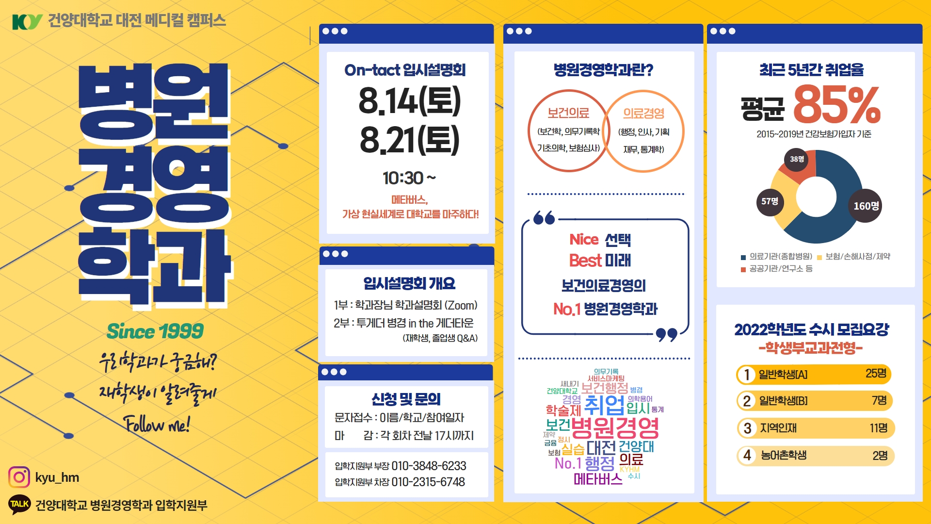 ❗병원경영학과에 관심이 있는 고교생 여러분 주목해주세요❗ 건양대학교 병원경영학과에서 온라인 입시설명회를 진행할 예정입니다. [ 입시설명회 일시 ] 8월 14일