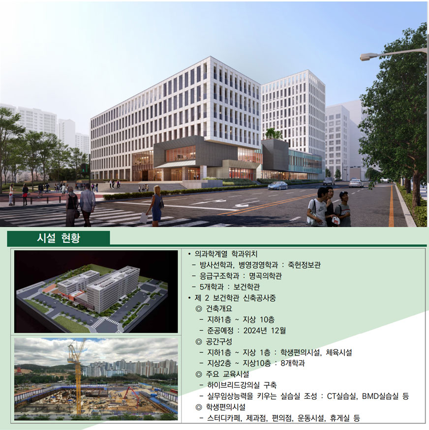 『 건양대학교 의과학계열 신축건물 건축현황 』글의 상세내용을 확인하는 표로 제목, 부서명, 등록일, 조회, 첨부, 내용으로 나뉘어 설명합니다.
