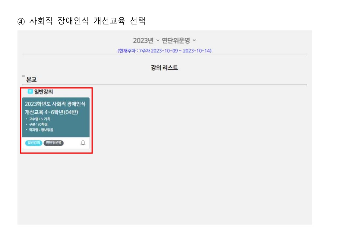 ○ 교과목명 : 2024학년도 사회적 장애인식개선교육