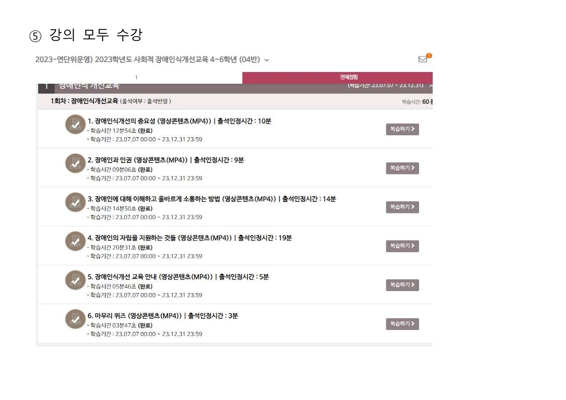 2024학년도 재학생 대상 장애인식개선교육에 대하여 다음과 수강하여 주시기 바랍니다.