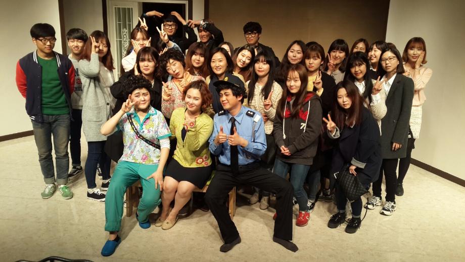 2015년 3월 19일 3주차 한우석교수님패밀리원들과 함께 대전 대흥동 상상아트홀에서 열리는 “뽀글이 아줌마”라는 연극을 관람하였습니다. 연극을 관람하기 전, 모두 함께 맛있는 간식타임을 가졌답니다^^