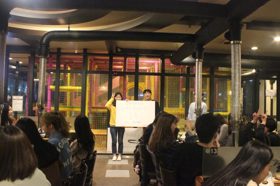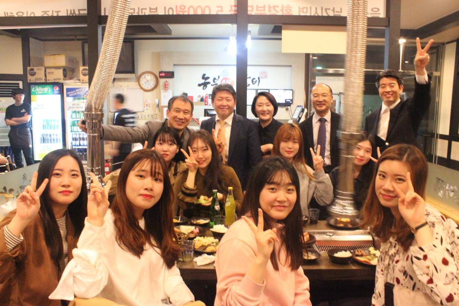 2017년 4월 11일 병원경영학과 단체 회식이 있었습니다. 사전 미션이었던 사진 콘테스트와 회식을 통해서 전 학년과 교수님들까지도 친목을 다질 수 있는 좋은 시간이었습니다!!