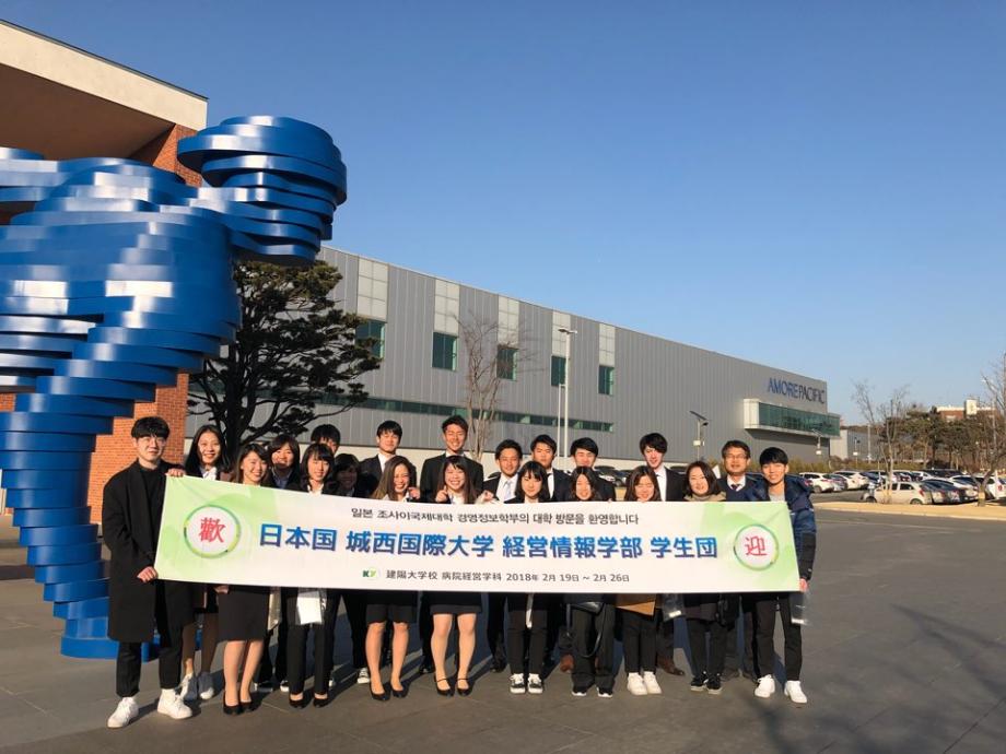 2018년 2월 21일 수요일, 병영경영학과 학생들과 조사이 국제 대학 학생들은 오전에는 충남 아산시에 위치한 현대 공장에서 공장에 관한 소개와 자동차 공정 과정 10단계를, 오후에는 경기도 오산에 위치한 아모레퍼시픽(Amorepacific) 공장에 방문하여 회사의 기원, 화장품 발전의 흐름, 공장 내부 모습을 견학하였습니다.