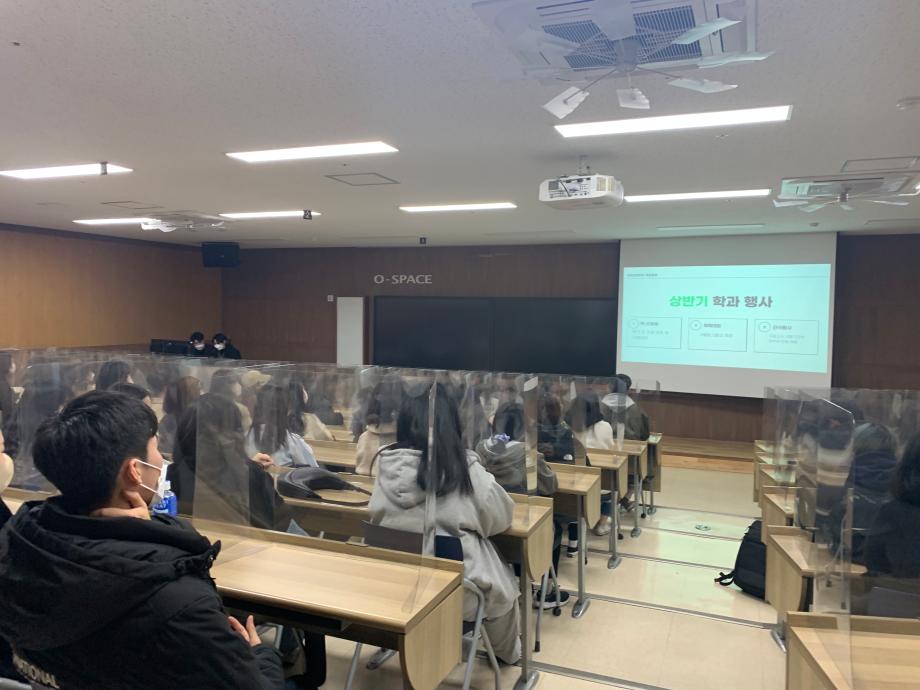 개강총회에서는 병원경영학과 학과장 김광환 교수님의 인사 말씀을 시작으로 개회사를 진행하였고, 이번 학기 편입생, 전과생, 복학생을 소개하는 시간을 가졌습니다. 또한, 병원경영학과의 새로운 학생회 부서장들을 소개하며, 상반기 진행할 행사에 대해서 간략하게 공지하였습니다. 오랜만에 개강 총회를 진행하여 학생들도 직접 마주하게 되어, 뜻깊은 시간이었습니다. .