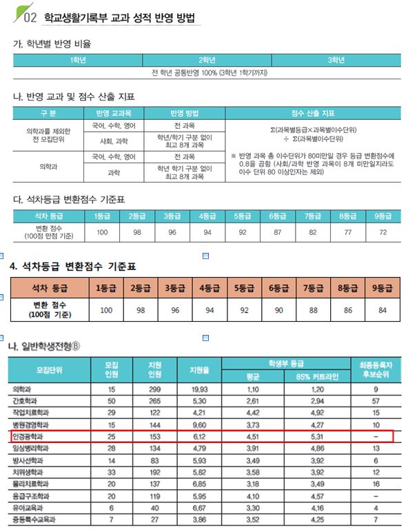 안경광학과 예비 입학생들을 위하여 입시분석결과를 말씀드리겠습니다.