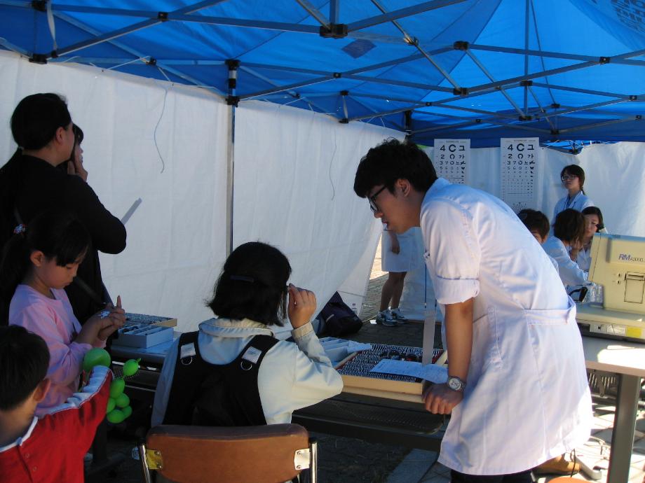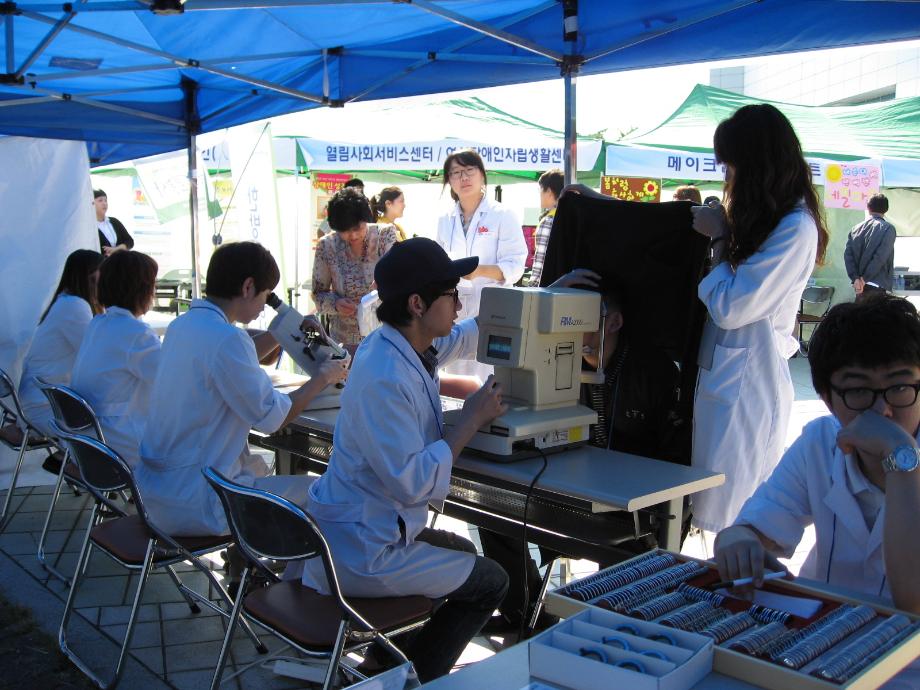2011.09.24(토), `2011 여성장애인 취업박람회 검안봉사 & 찾아가는 이동복지관` 행사에 서 3학년 및 2학년 학생 13명이 검안봉사에 참여하였습니다. 문진, 장용안경검사, 타각적 굴절검사, 자각적굴절검사, 입체시검사, 암슬러검사, 색각검사 등을 실시하였고 참가자들 로부터 좋은 호응을 얻었습니다.