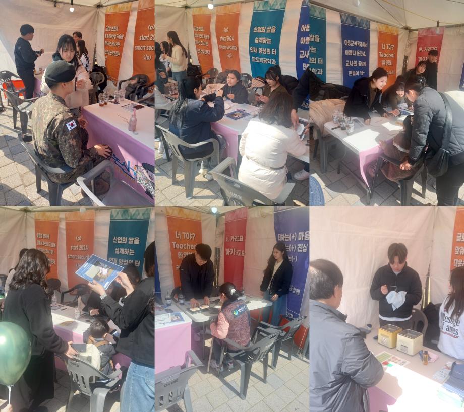 지역의 큰 행사 중의 하나인 2024 논산 딸기축제 행사에 건양대학교 부스 첫 날로 안경광학과 학생 9명과 지도교수님이 방문하신 관람객들을 대상으로 시기능이상 평가 체험프로그램을 진행하면서, 건양대학교 안경광학과 홍보도 같이 진행하였습니다. 목요일 첫 날임에도 많은 관람객분들이 축제를 찾아주셨고, 적지 않은 분들이 학과부스를 방문해주셨습니다. 학교에서 배운 지식과 실무능력을 통해서 기본적인 시기능에 대해서 설명 및 안내해드릴 수 있는 좋은 기회이었습니다. 추운 날씨임에도 불구하고 수고해주신 안경광학과 재학생들과 지도교수님에게 감사의 말씀을 전해드립니다.