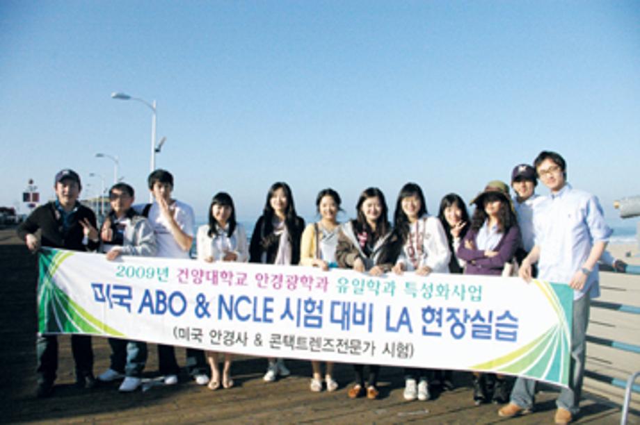 안경사 위상 제고 및 해외진출 교두보 마련 건양대학교 안경광학과(학과장 김재민)는 미국의 안경사 시험과 콘택트렌즈 전문가 시험 에 처음으로 응시한 재학생 및 대학원생, 15명 모두 합격하는 쾌거를 이뤘다고 지난 18 일 밝혔다. 건양대 안경광학과 15명의 학생들은 지난해 11월 미국 전역에서 실시된 미국 안경사(ABO) 와 콘택트렌즈 전문가(NCLE) 시험에 응시한바 있으며 지난 15일 전원 합격의 통지서가 도 착했다. 2년 전부터 해외 현장실습을 시행하고 있는 건양대 안경광학과는 이번 미국 안경사 시험 도전을 위해 그 동안 원서를 활용한 수업과 방과 후 특강, 그룹 스터디 등으로 시험을 준 비해 온 것으로 알려졌다. 건양대 안경광학과 측은 이번 미국 안경사 및 콘택트렌즈 전문가 시험 합격의 미국 자격 증 취득으로 우리나라 안경사의 해외 진출에 중요한 전환점이 될 것으로 기대하고 있다. 건양대 안경광학과는 △해외 자격증 취득으로 안경사 활로 개척 △해외 취업의 길 확대 △안경사의 위상 제고 △전문가로의 인식 △외국인에게 양질의 검안 서비스 제공 등을 위 해 미국 안경사 시험에 도전하게 됐다고 전했다. 미국 안경사 자격 취득은 앞으로 우리나라 안경업계에 적지 않은 영향을 미칠 것으로 분 석되고 있다. 안경사의 지위 향상은 물론 각 대학 안경광학과는 차별화를 통한 특성화 구 축에 보다 더 심혈을 기울일 것으로 보인다. 또 해외진출에 대한 학생들의 동기부여와 함께 외국인 검안 능력 증대를 통한 국제 경쟁 력 확보에 일조할 것으로 기대를 모으고 있다. 미국 안경 협회 ABO (American Board of Opticianary) 자격증은 처방을 제외한 안경 조제 가공 및 안경에 대한 전반적인 것을 할 수 있는 자격이 주어지며 국가 콘택트렌즈 검사 자 NCLE (National Contact Lens Examiners) 자격증은 콘택트렌즈 피팅과 함께 콘택트렌 즈에 대해 전반적인 관리를 할 수 있는 자격이 주어진다. 이번 미국 안경사 및 콘택트렌즈 전문가 시험에는 김수현, 김창진, 이민아 등 대학원생 3 명이 합격했으며 김도동, 김용길, 전지훈, 주영준, 고은혜, 남수경, 문선아, 이정은 등 8 명의 4학년 재학생 역시 합격했다. 김영진, 임혜숙, 권소현, 김혜령 학생 등 4명 또한 3 학년임에 불구하고 미국 안경사 및 콘택트렌즈 전문가 시험에 합격하는 저력을 보였다. 한편 건양대 안경광학과는 앞으로 재학생 전원에게 국내 안경사 면허 취득뿐만 아니라 미 국 자격증도 취득하도록 교육할 예정이다. 2010.1.25 |