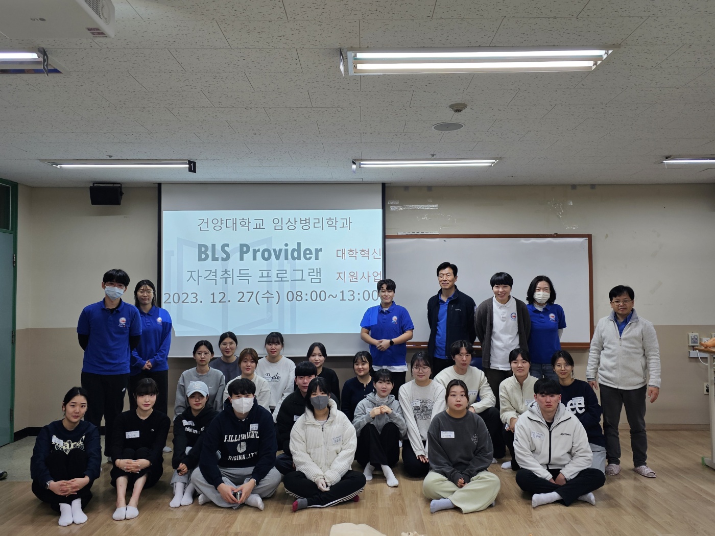 가. 프로그램명 : 임상병리학과 BLS Provider 자격취득 교육 나. 운영기간 : 2023.12.27.(수)~12.28.(목) 다. 운영장소 : 명곡의학관 501호 라. 참여대상 : 임상병리학과 3, 4학년 마. 참여인원 : 63명