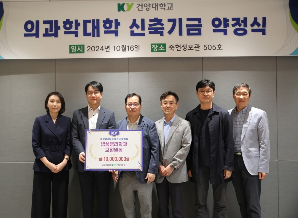 | 제목 | 건양대학교 의과학대학 신축 건물 발전기금 약정식에서 임상병리학과 교수진, 1천만 원 상당 기부금 전달 | ||||