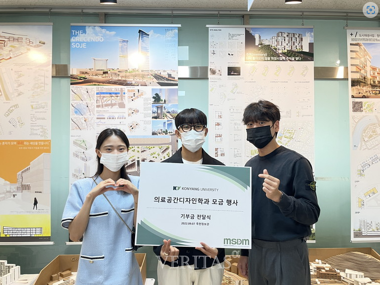"건양대 의료공간디자인학과 학생과 교수가 수해 피해를 입은 학우를 위해 성금을 모아 전달했다고 8일 전했다. 의료공간디자인학과 학생회장 오윤택 씨 외 14명은 폭우로 인한 자연재해가 다수 발생하자 작은 도움이라도 되고자 지난달 중순부터 자발적으로 학생과 교수들에게 성금 모금을 시작했다.그 가운데 같은 과 학우의 집이 이번 태풍으로 인해 피해를 입은 것을 알게 됐고 이에 학생들은 그간 모은 성금을 피해 학우에게 전달하기로 뜻을 모았다. 의료공간디자인학과 학생회는 7일 오전 메디컬캠퍼스에서 피해 학우에게 성금을 전달하는 동시에 수해 피해에 대한 깊은 위로의 뜻을 전했다. 이번 성금 모금을 주도한 의료공간디자인학과 오윤택 학생회장은 "적은 돈이지만 갑작스러운 폭우로 피해를 본 학우에게 조금이나마 도움이 되길 바란다"며 "우리 학우의 어려움을 함께 공감하고 진심어린 마음으로 도움을 주신 교수님들과 학우 여러분께 감사드린다"고 밝혔다.'