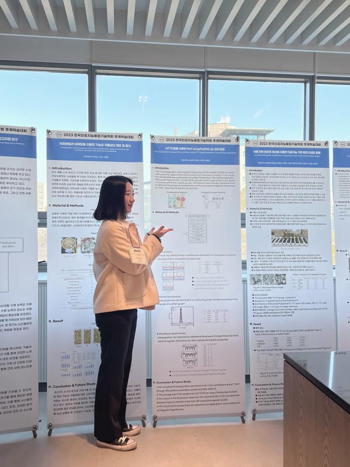 2023 한국인공지능융합기술학회 추계학술대회 참가 및 우수 논문상(Poster 세션) 수상 - 학회일자 : 2023.11.10(금)~11.11(토) - 수상현황 1. 생체의학적 응용을 위한 Mn1-xCoxFe2O4 나노입자 박막의 초상자성 특성연구 이수완, 최환, 김성백(건양대) |