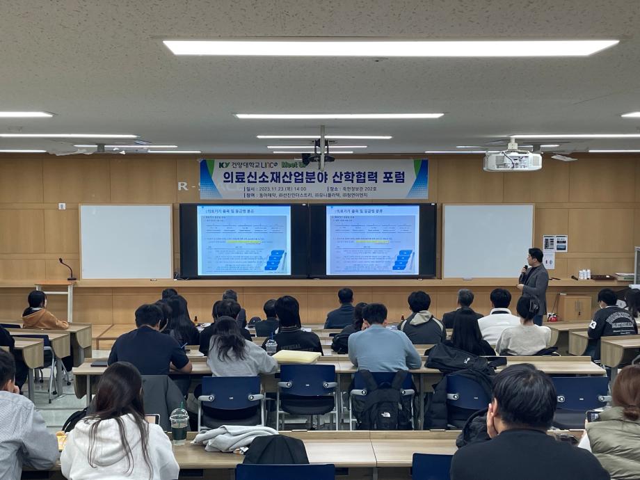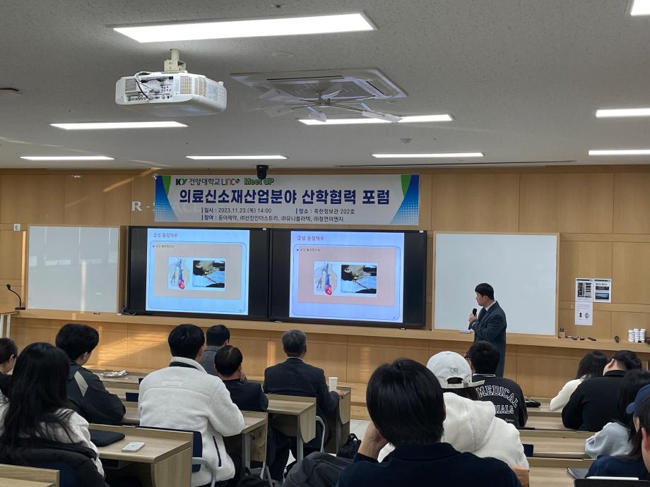 의료신소재산업분야 산학협력 포럼 - 일시 : 2023.11.23(목) 14:00 - 장소 : 죽헌정보관 202호 - 참여기관 : 동아제약, (주)선진인더스트리, (주)유니플라텍, (주)청연이엔지 |