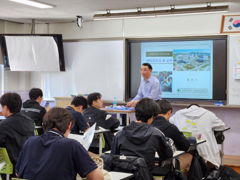 일시 : 2024.5.13(월) 13:00~15:30 방문고교 : 금산고 특강자 : 홍영기교수 주제 : 생체재료와 의학의 융합 생명연장 |