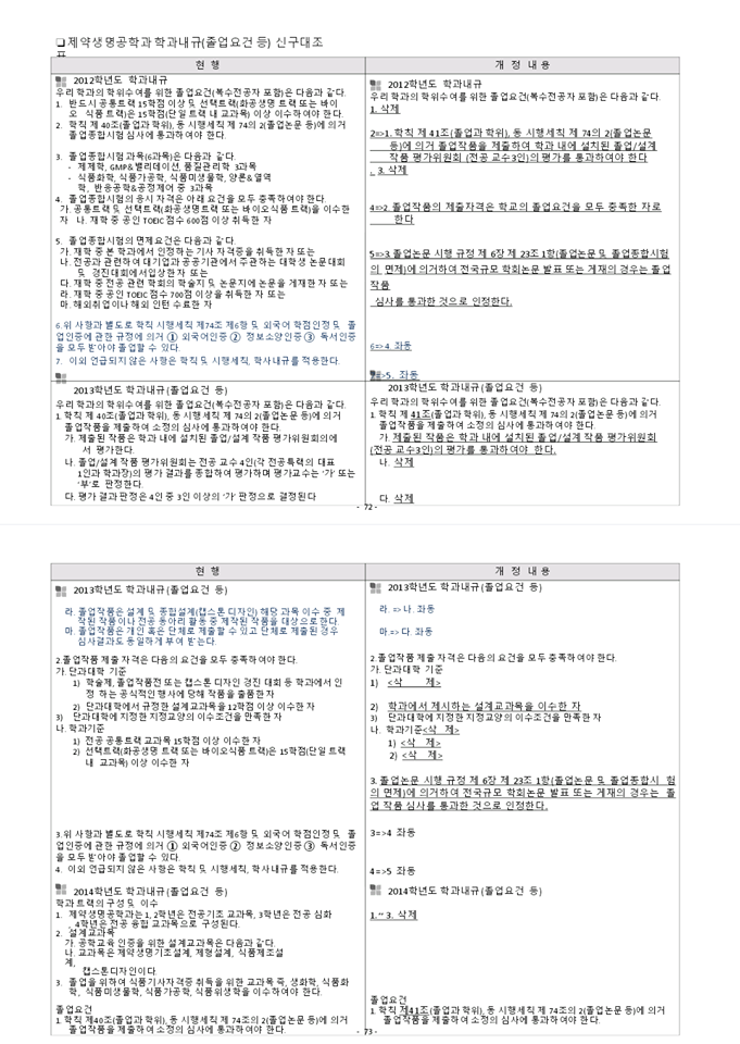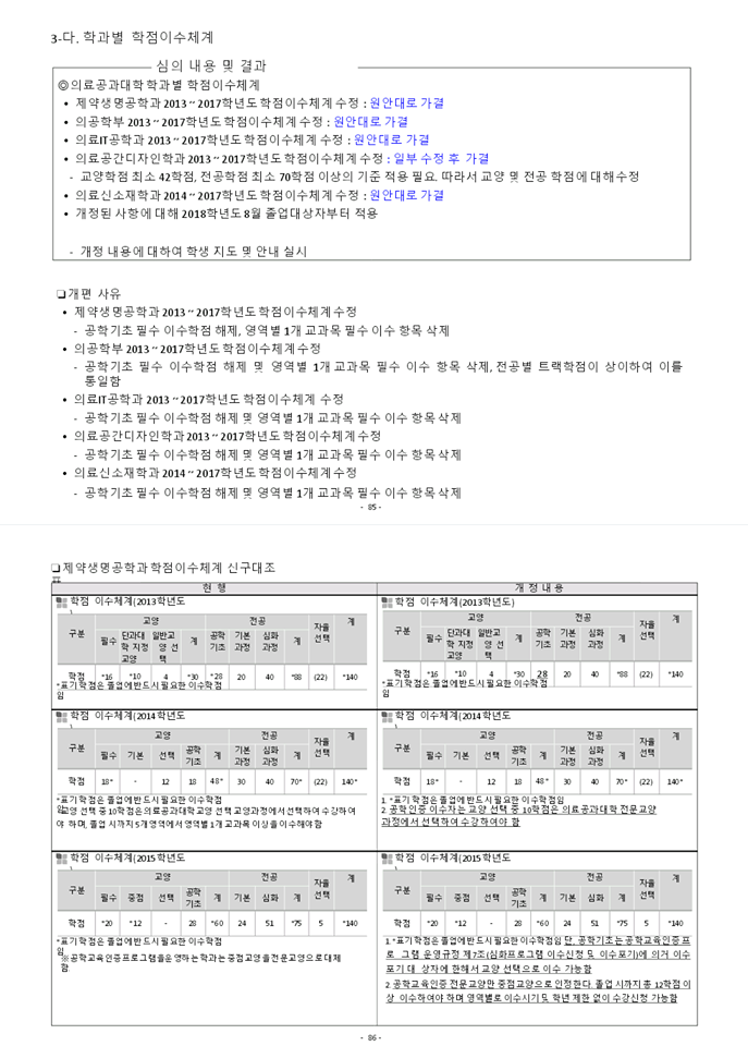 2018학년도 교육과정운영위원회 회의 결과에 따른 제약생명공학과 교육과정 및 학과내규 개정사항