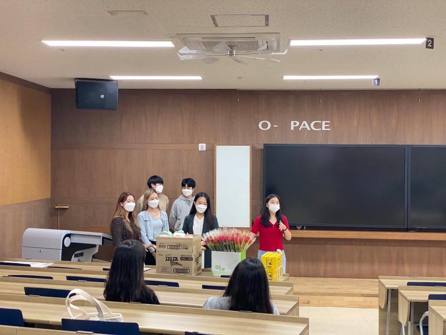 제약생명공학과 21학번 성년의 날 안녕하세요 제약생명공학과 학생회입니다. 2021년 05월 17일 12:50에 제약생명공학과 21학번 성년의 날 이벤트를 진행했습니다. 올해 성년이 된 21학번 학우분들을 위해 장미꽃과 간식 상자를 준비하여 전달하였습니다. ❤21학번 학우분들의 빛나는 20대를 기원합니다❤ 손소독, 발열 체크 등 코로나 방역 수칙을 준수하며 진행되었습니다.
