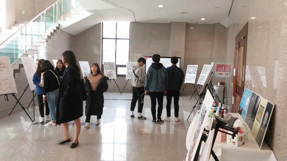 학술제 실시간 현황? 많은 분들이 전시를 즐기고 계십니당? 시각디자인과 학술제 전시는 내일 5시까지 계속 되니 많이 찾아오셔서 관람하고 가세요!!! 갸악 신난댜ㅏㅏㅏㅏ