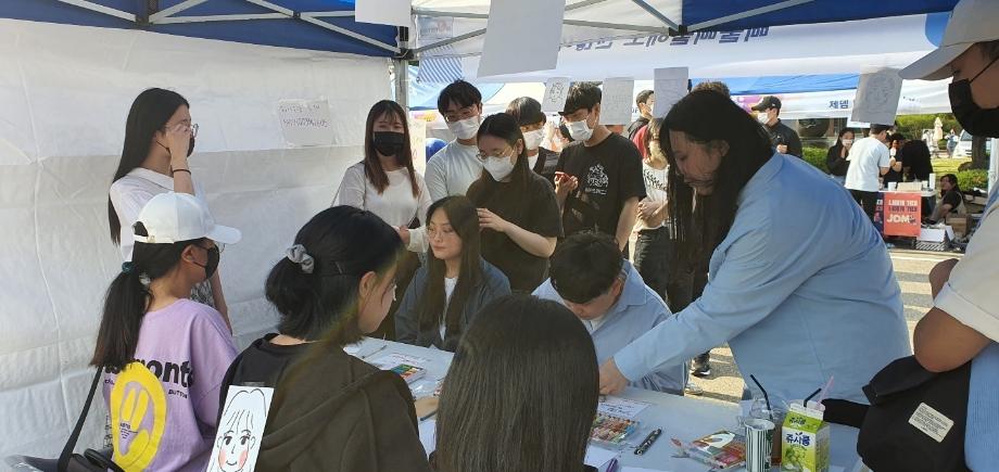 이번 건양대학교 개교 31주년 기념행사"청춘낭만" 행사 진행 시각디자인학과 학생들이 운영한 "삐뚤삐뚤해도 괜찮아" 캐리커쳐 부스 운영 사진