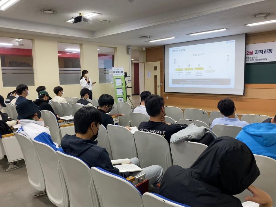 2022년 대학혁신지원사업의 일환으로 스포츠안전관리사 2급 자격과정을 학교의 예산 지원을 받아 진행하였습니다.