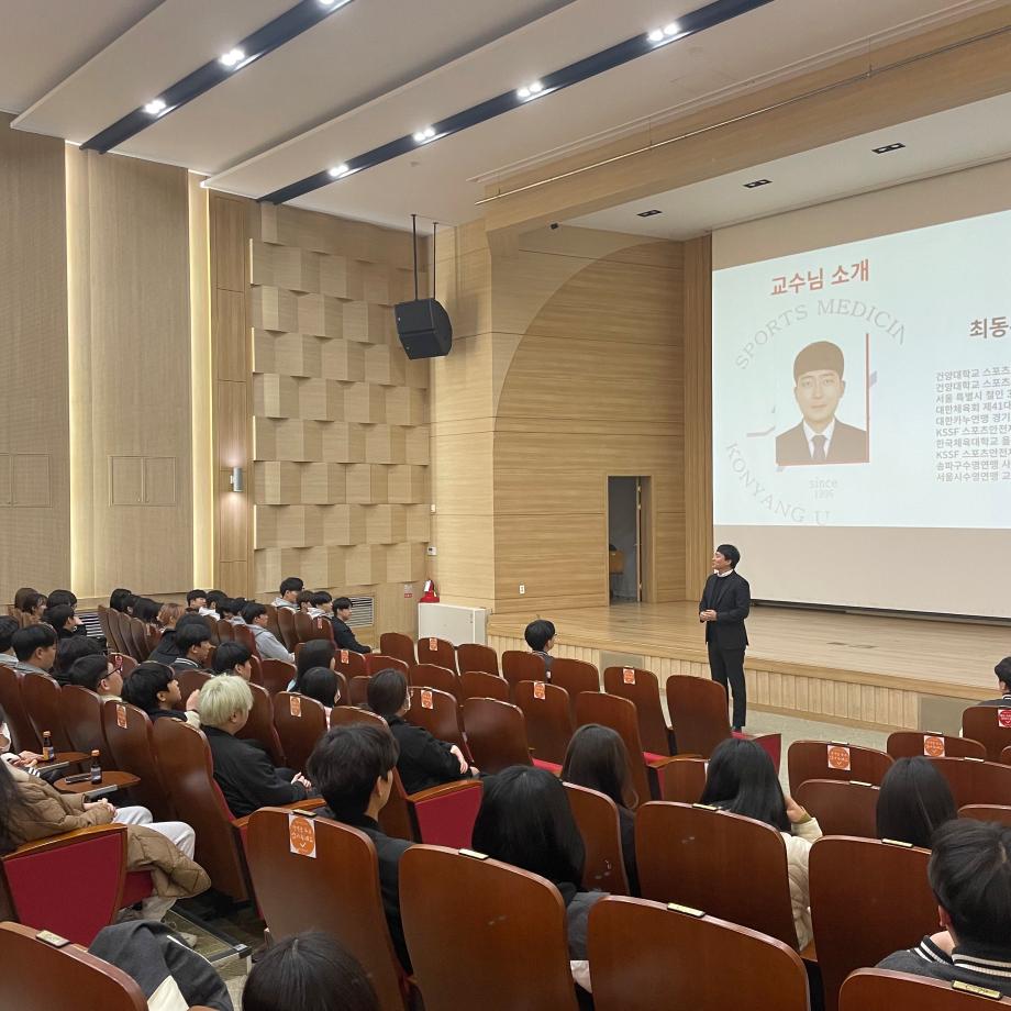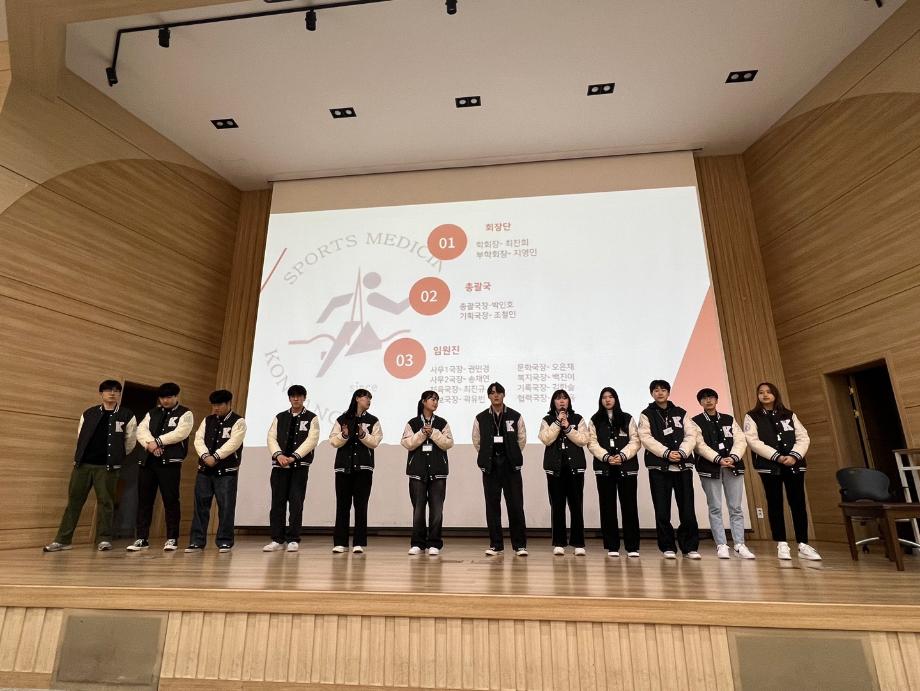 국민의례 - 교수님 소개 - 학생회 소개 - 편입&복학생 소개 - 학과 1년 계획 - 동아리 소개 - 인스타&오픈채팅 소개 - 대면식 순으로 진행되었습니다. 스포츠의학과 학우분들의 더욱 즐거운 학교 생활을 응원하며 1년간 더 노력하는 학생회가 되겠습니다 ٩(ˊᗜˋ)و 스포츠의학과 관련 궁금한 점이 있으시다면 학과 오픈채팅으로 편하게 보내주세요 |