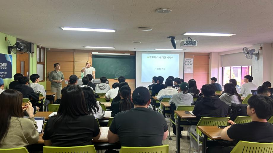 [2024학년도 스포츠의학과 졸업생 특강] 2024년 5월 13일(월) W휘트니스에서 근무중인 박O혁 학우의 졸업생 특강이 있습니다. 트레이너란 무슨 직업인지 어떻게 하면 트레이너가 될 수 있는지에 대해 설명해주시고 트레이너로 일하면서의 실무경험과 앞으로 트레이너라는 직업의 전망에 대해 설명해 주시면서 특강의 마무리 되었습니다! 이번 특강을 통해 진로에 한걸음 다가가기 위한 노력에는 무엇이 있는지 생각해 보는 시간을 가졌으면 좋겠습니다. 수고하셨습니다! |