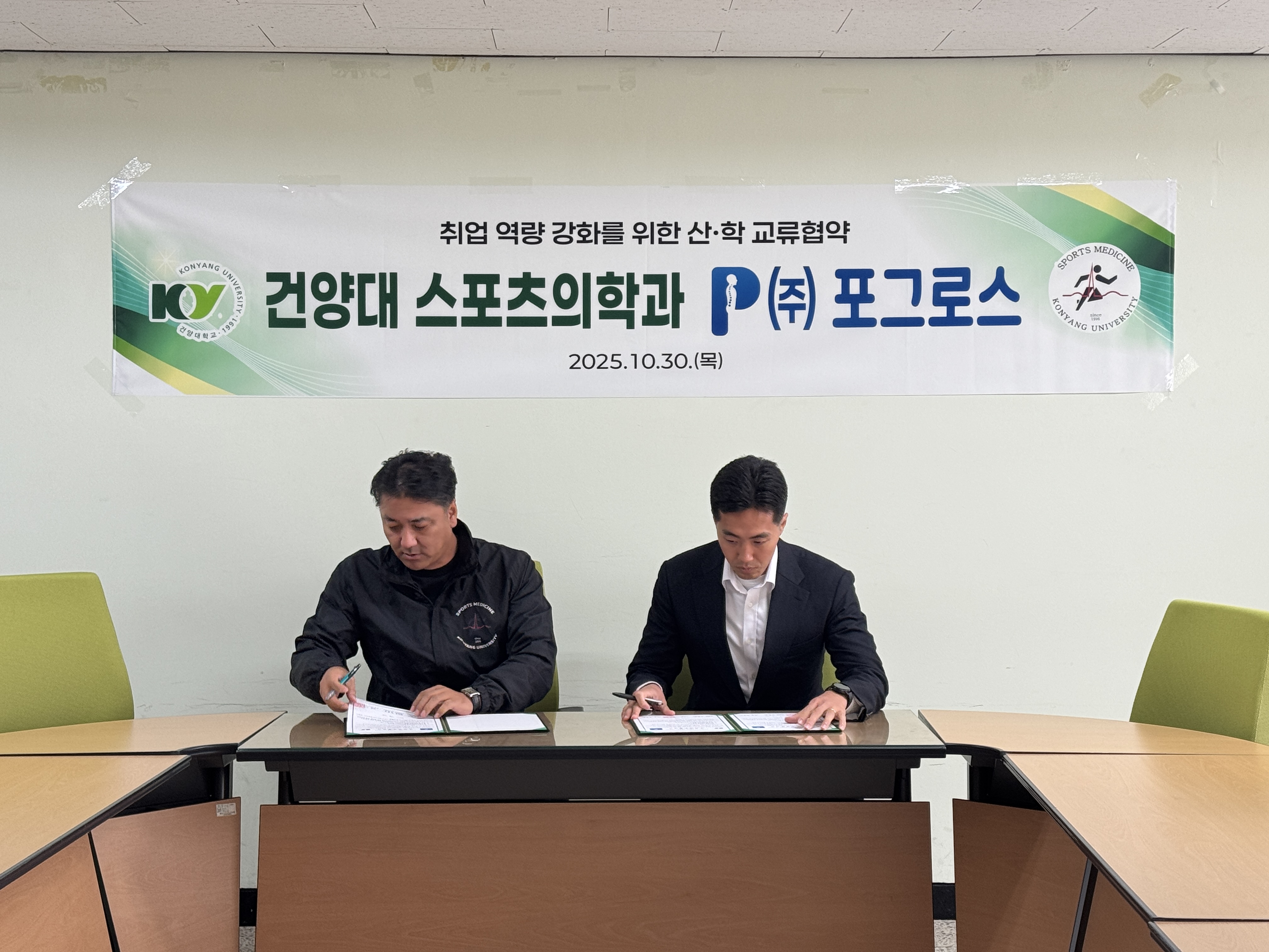 2025학년도 10월 30일, 건강한 움직임을 만드는 (주)포그로스 교육기관과 건양대학교 스포츠의학과가 2025년에 가족회사(MOU) 협약을 체결하여 전문가 특강을 진행하였습니다! 이번 특강에서는 현장에서의 플라이오매트릭 적용과 단순한 관절의 가동범위를 확인하는 것을 넘어 움직임의 안정성, 제어력, 기능회복을 함께 평가하는 접근방식을 사용하여 진행하였습니다. 이번 교육을 통해 실제 트레이닝 현장에서 어떻게 움직임을 해석하고 적용해야 하는지에 대한 이해가 크게 넓어졌습니다. 뜻깊은 강의를 진행해주신 포그로스에 진심으로 감사드립니다!!!