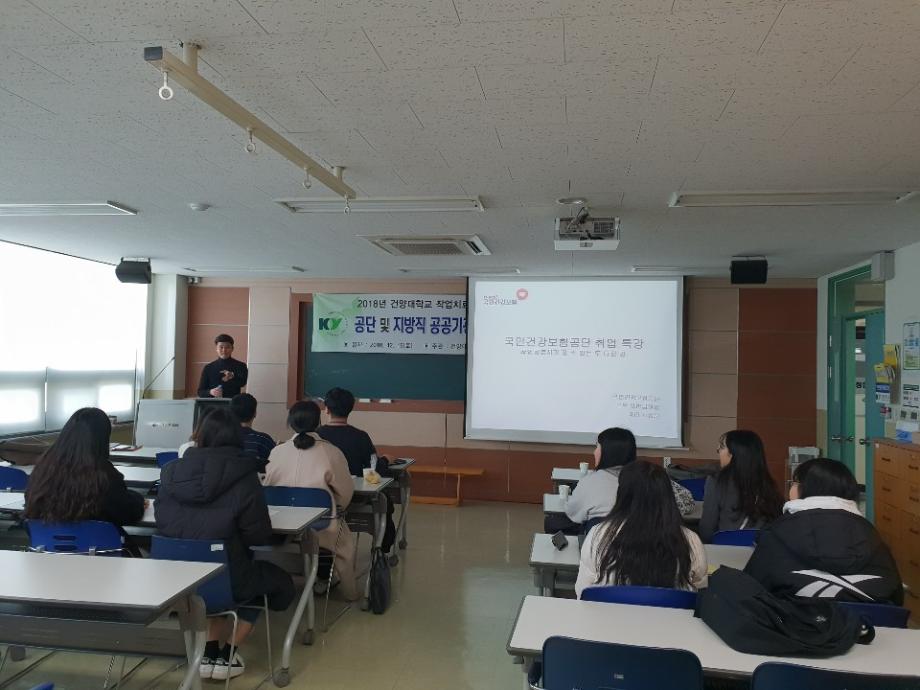 2018년 12월 15일 토요일 오전 9시에 건양대학교 취업처 주관으로 이루어진 작업치료학과 취업캠프에서는 약 40여명의 재학생과 졸업 예정자 학생들이 참여하여 취업을 위한 준비와 역량증진 프로그램이 진행되었습니다. 이번 취업캠프에서는 공단 및 공공기관 취업을 위한 준비와 이력서 및 자기소개서 작성과 피드백 시간으로 알차게 구성하였습니다. 1부 공단 및 공공기관 졸업생 특강 시간에는 국민건강보험공단, 도로교통관리공단, 대전서구치매안심센터에서 근무하는 졸업생 선생님들께서 오셔서 취업을 위한 전략 특강을 진행해 주셨습니다. NCS 기반의 시험 준비와 면접 관련된 특강을 진행하는 동안 막막하고 준비를 어떻게 해야 할지 모르는 부분들에 많은 도움이 되었습니다. 이어지는 이력서 및 자기소개서 특강 시간에는 사전에 제출한 자료들을 첨삭지도 받으면서 성공적인 취업을 위한 뜻 깊고 알찬 시간이어었습니다. 아직 졸업이 남은 재학생들은 미래 직업적성 검사를 통해 나의 적성에 대해서 알아보는 유익한 시간이었습니다. 건양대학교 취업처에서 주관하는 이번 작업치료학과 취업캠프에서는 공단 및 공공기관 취업을 위한 알차고 좋은 시간이었습니다. 모두들 성공취업을 위해 화이팅 하면 좋겠습니다. |